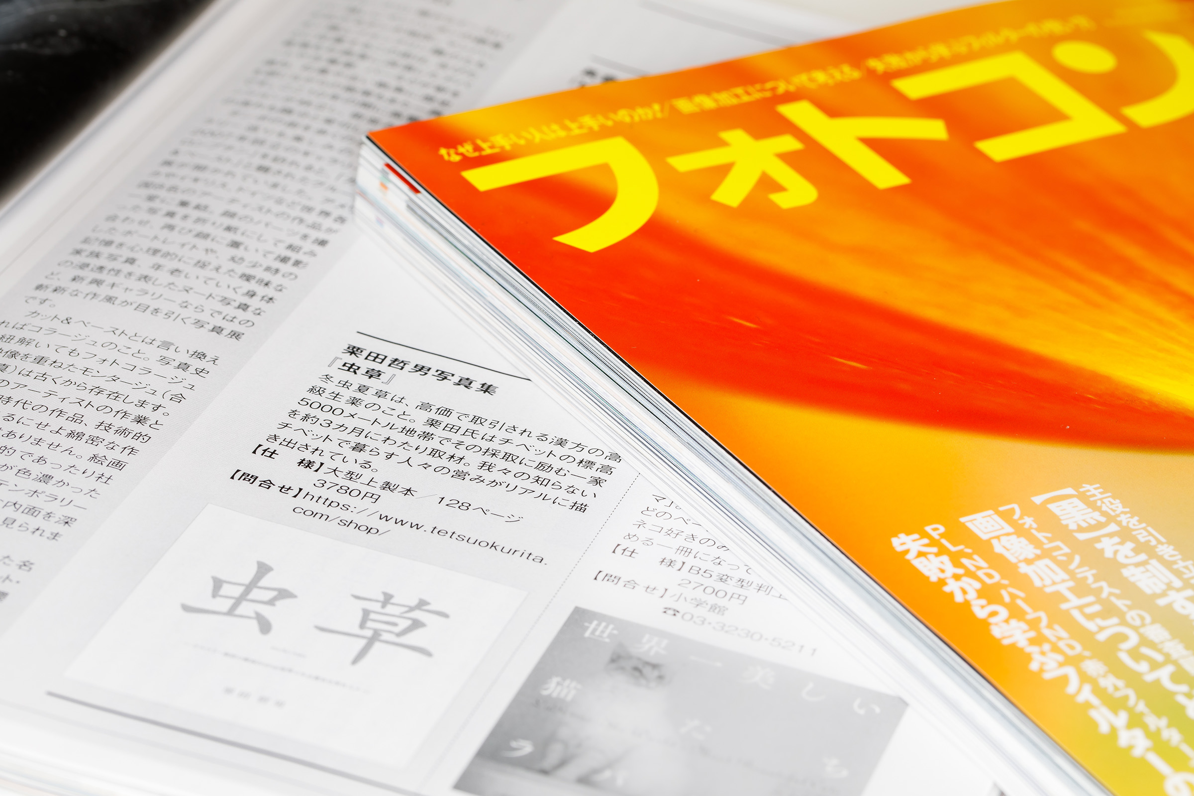 日本写真企画さんのカメラ雑誌「フォトコン」4月号(3/20発売)にて、「今月の新刊」として、写真集『虫 草 − チベット・極限の標高5000m地帯で冬虫夏草を採る人々 −』の紹介を写真付きで掲載いただきました。